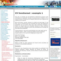 Exemples de cv pour le commerce et le service. Explorez nos 100 modèles de cv au format word gratuitement téléchargeables et facilement éditables quelque soit votre métier. Relisez un exemple de curriculum vitae fonctionnel, qui met l'accent sur ses compétences et ses expériences plutôt que l'historique de travail, avec plus d'informations et de conseils. Le style de rédaction du cv fonctionnel.